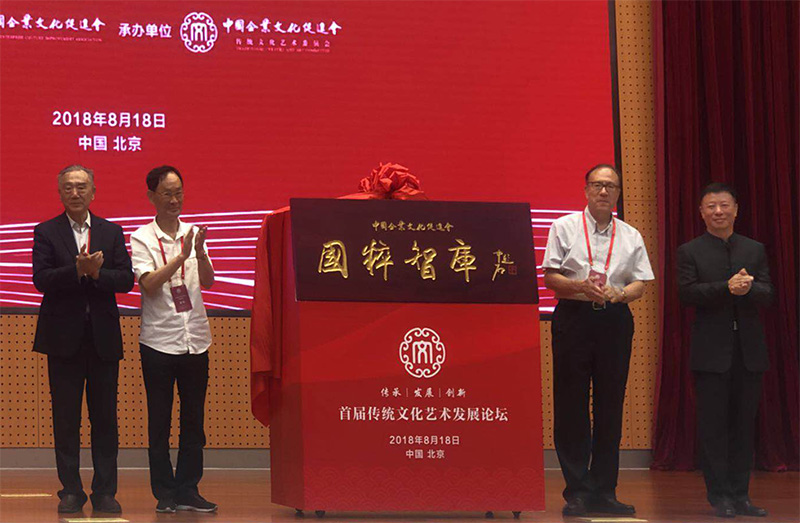 2018年8月18日上午,全国工商联原副主席、华夏产业经济研究院院长、北京民营科技促进会会长王治国在北京人民日报社出席首届传统文化艺术发展论坛并为中国企业文化促进会"国粹智库"揭牌。