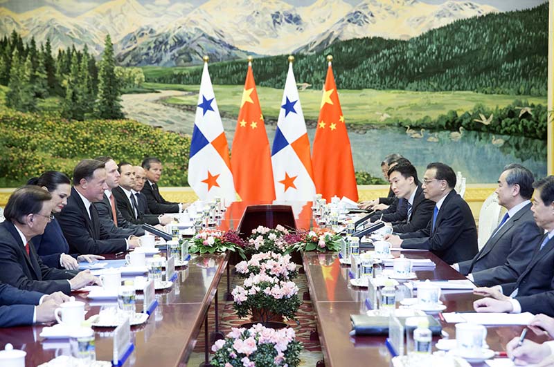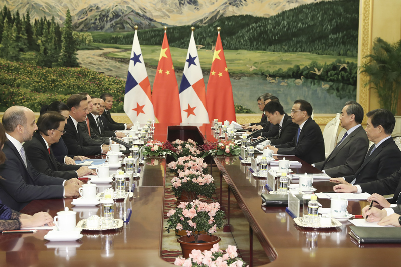 11月17日,国务院总理李克强在北京人民大会堂会见来华进行国事访问的巴拿马总统巴雷拉。