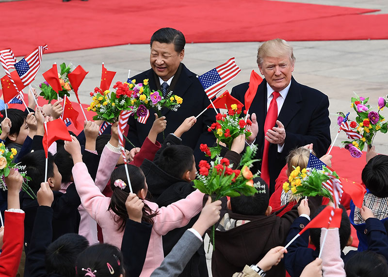 11月9日,国家主席习近平在北京人民大会堂东门外广场举行欢迎仪式,欢迎美利坚合众国总统唐纳德·特朗普对中国进行国事访问。新华社记者 庞兴雷 摄