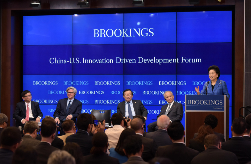 9月27日,国务院副总理刘延东在美国华盛顿布鲁金斯学会出席中美创新驱动发展主题研讨会并发表主旨演讲。新华社记者 殷博古 摄