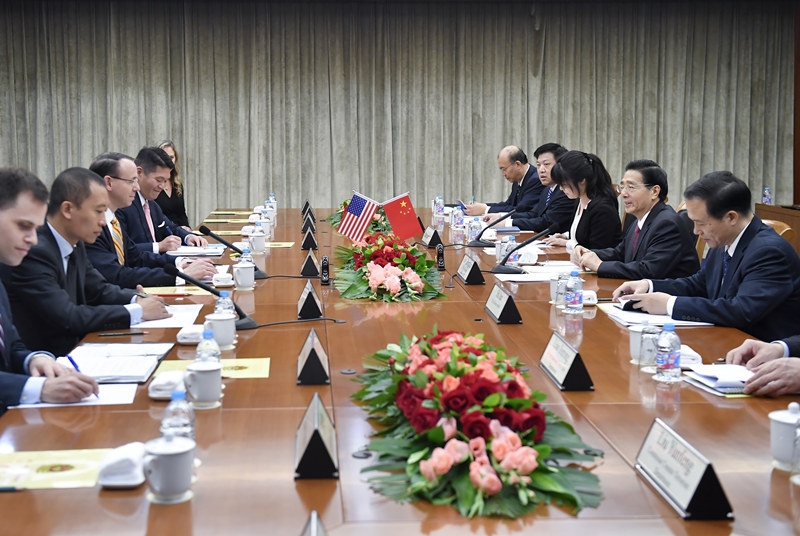 9月25日,国务委员、公安部部长郭声琨在北京会见美国司法部常务副部长罗森斯坦。新华社记者 燕雁 摄
