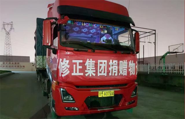 .满载捐赠西安防疫物品的车辆出发。修正药业集团供图。