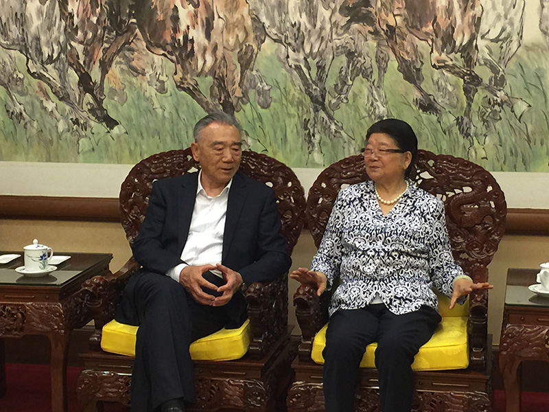 图:全国人大常委会副委员长顾秀莲在会前同王主席热情交谈