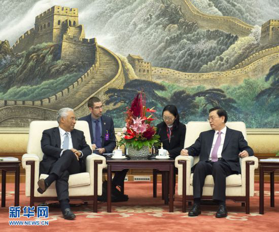 张德江说,当前,中葡关系处于历史最好时期,双方政治互信牢固,各领域务实合作持续深化。此访期间,习近平主席与你就增进各领域合作达成重要共识,进一步引领和推动中葡全面战略伙伴关系发展。长期以来,中国全国人大与葡萄牙议会保持着友好往来,是中葡友好合作的支持者和推动者。两国立法机关应着力提升合作水平,增强合作的针对性和实效性,积极推动务实合作、人文交流和民间交往,为合作交流创造更好的政策、法制和安全环境,为中葡关系发展夯实坚实的社会和民意基础。