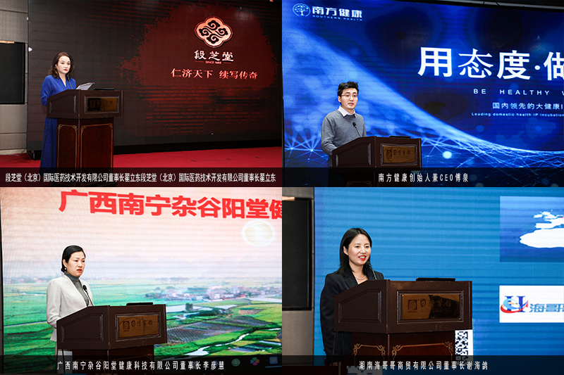 与此同时,段芝堂(北京)国际医药技术开发有限公司董事长翟立东、南方健康创始人兼CEO傅泉、广西南宁杂谷阳堂健康科技有限公司董事长李彦慧、湖南海哥哥商贸有限公司董事长谢海鸽也分别就各自企业的发展情况作深入推广和交流。