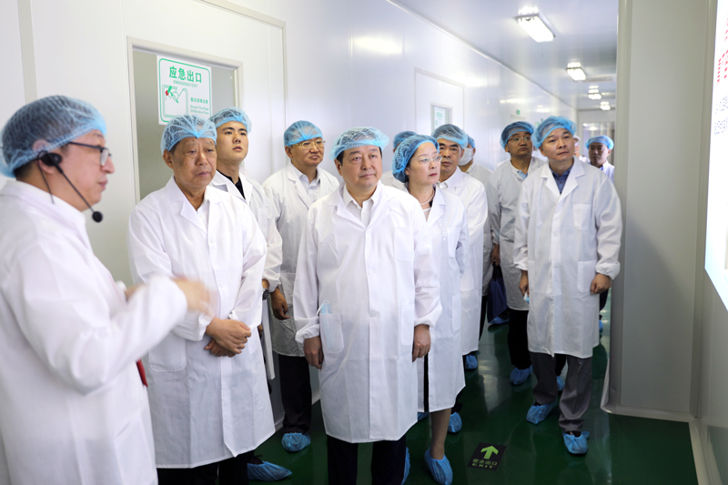 在论坛期间,由十二届全国政协刘晓峰副主席带队,与会的领导和专家一行还专程就疫情后的复产复工与产学研合作问题深度调研了舒禾江苏健康产业有限公司和江苏大学医学院。